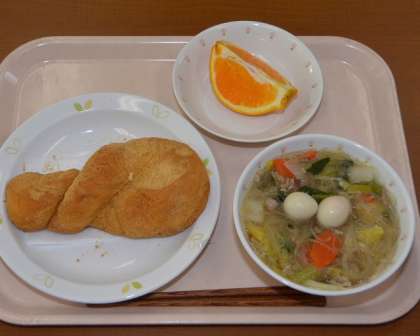きな粉揚げパン 牛乳 春雨スープ デコポン