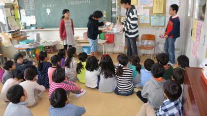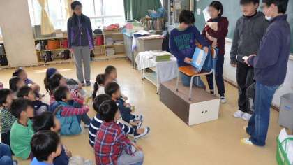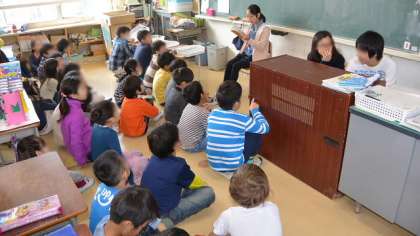 低学年の子どもたちは、お兄さんお姉さんの読み聞かせを楽しみにしていました。真剣に聞いてくれました。