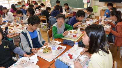 20日(金)、今年度最後の給食・・・ということは、6年生にとっては小学校生活最後の給食です。この6年間で1100回ほどの給食を経験していることになります。今日は、調理員さんのいきなはからいがあったこともあって、このあと調理員さんに教室に来ていただいて、各クラスでみんなからお礼の言葉をおくりました。卒業式を前にして「感謝」の気持ちをもつことが大切ですね。