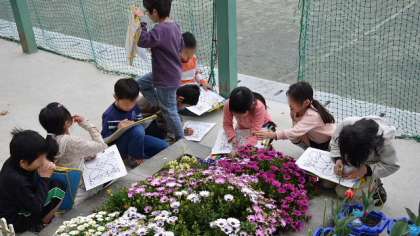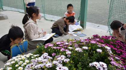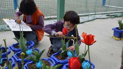 10日(金)、2年生の生活科の学習「春をさがそう」です。学校内をまわって春の息吹を感じ、ワークシートに絵や説明をかき込んでいきます。真剣なまなざしの子どもたちです。1年生の時に植えた一人一鉢のチューリップも立派に咲いて、そろそろ花も終わりです。