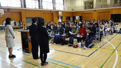 10日(金)、3・4年生の保護者会を開催しました。どんよりした天気で、全体会を行った体育館は肌寒かったのですが、多くの保護者の方が参加して下さいました。3・4年合同の全体会を体育館で行い、3年がそのまま体育館で、4年がランチルームで学年の会を、その後、学級保護者会という流れです。今年度異動してきた担任のクラスでは新たな出会いが、そして学級編成替えのあった3年生では、新たな結びつきができました。