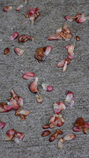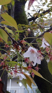 一方、東門脇のヤマザクラの一種(何の種類か特定できていません。詳しい方がいらっしゃいましたら教えて下さい)は花びらが散っていますが、よく見ると花がついていたところに実ができています。地面には花びらだけで、花柄は落ちていません。よく観察してみると、自然はいろいろなことを語りかけてきます。