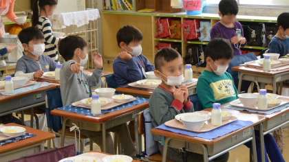 1年生 学校生活初めての給食3