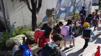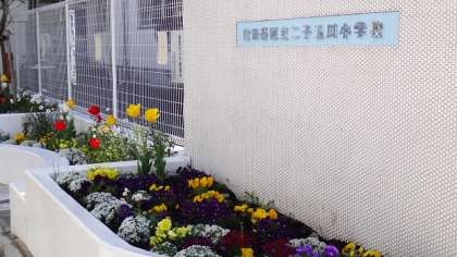 15日(水)、久しぶりの日差しで、子どもたちが気持ちよく登校してきました。本校の花壇は、今、花いっぱいです。そんな中を、子どもたちが気持ちよく登校してきました。西門前の花壇(写真一番下)は、地域の方が整備を担当してくださっています。おかげさまで、登校してきた子の気持ちが和らぎます。