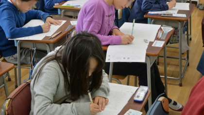 5年生は今回が初めてです。ふだんは1枚物のテストを受けているのですが、この形式のテスト(問題文冊子と解答用紙)に慣れていない子が大半です。それでも最後までしっかり取り組んでいました。