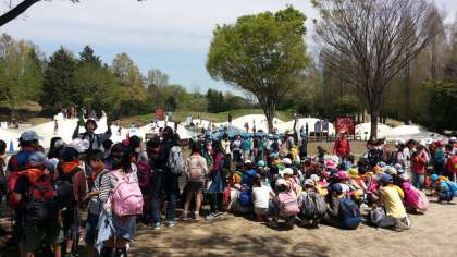 子どもの森に到着しました。グループに別れてお昼の時間までいっぱい遊びます。