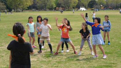 昼食の後は、すごく広い原っぱで、思う存分遊びました。ここでの1番人気は「だるまさんがころんだ」でしたが、自分たちで工夫して遊びを考えて、楽しそうに遊ぶグループもいて、感心しました。