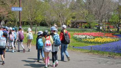 昭和記念公園は、桜の花もまだ咲いていて、チューリップなどが花壇に植えられていて、花盛りでした。天気にも恵まれて、楽しい遠足になりました。