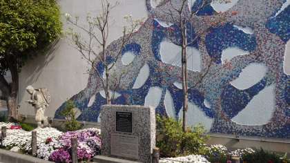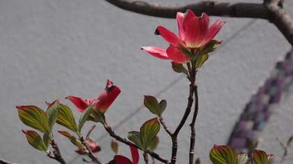 西門から入ってすぐのところにあるハナミズキが咲き始めました。この2本の木は、2000年に、日米交流でアメリカ合衆国オハイオ州知事から贈られた原木のうちの2本です。そのいわれは、石碑に記してあります。機会があったら是非ご覧ください。