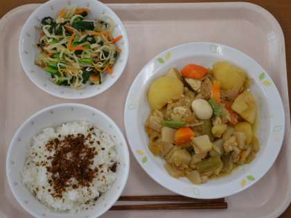 ごはん かつおでんぶ 牛乳 春野菜のうま煮 おひたし