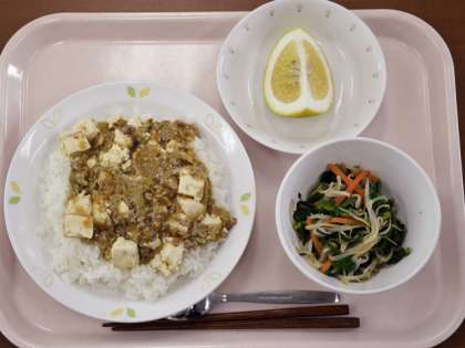 麻婆豆腐丼 牛乳 ナムル ニューサマーオレンジ