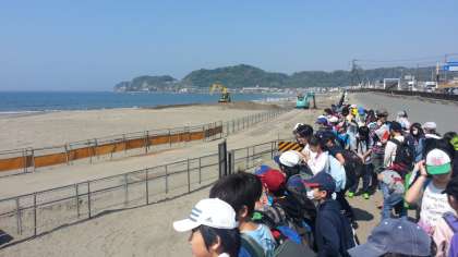 バスは順調に鎌倉へ。予定より早く着いたので、由比ヶ浜まで行って、海を見てから出発することにしました。晴れた海は、気持ちがいいですね。