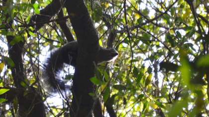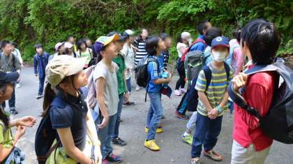 化粧坂に登る途中で、リスに遭遇。みんな夢中で見上げていました。