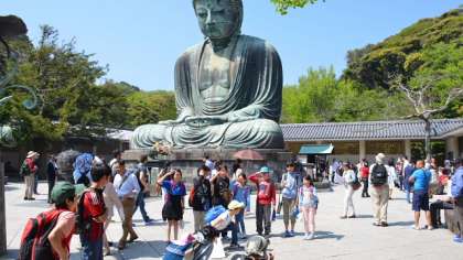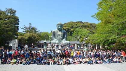 鎌倉大仏を思い思いに見学して、最後は学年みんなで記念撮影をしました。天候に恵まれ(恵まれすぎて暑かったのですが)、けが人や病人もなく、楽しい遠足でした。