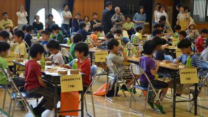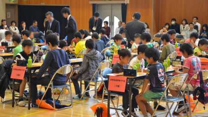 フェスティバルの開会に先立って9時から本校体育館を会場にして、花みず木フェスティバルの協賛事業として「世田谷花みず木竜王戦」(小、中学生の将棋大会)が行われました。会場には、世田谷各地から集まった将棋の腕に覚えのある子どもたちが集まり、プロ騎士さんなどの立ち会いのもと、真剣勝負が繰り広げられました。本校児童も参加し、さらに本校出身の中学生が上位にはいるなど大活躍でした。