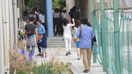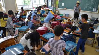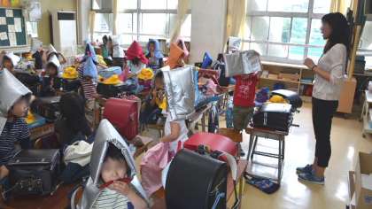 9日土曜授業日の4校時、児童の引き取り訓練を行いました。今日は、大規模地震発生の可能性が高まり、警戒宣言が発令されたという想定です。11時10分、放送で警戒宣言が発令されたことを報せる放送があり、全校一斉に下校の準備をしました。保護者、家族の方々も学校に集まってきました。
