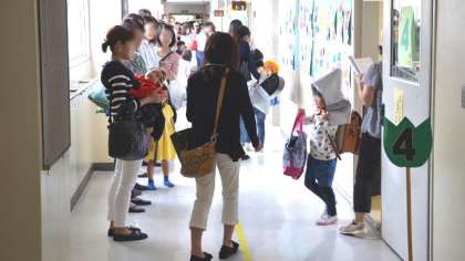 11時20分、事前にお知らせしていたこともあり、この時間にはすでに多くの方が来校していました。学校長から引き取り訓練の趣旨説明を行い、副校長の指示で、教室で順序良く引き取り、引き渡しを行いました。