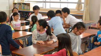 なかよし班をリードするのは6年生。班のまとめ役として、みんなから話を聞くときの司会役や、遊びを担当の教員と一生に考える活動の推進役です。