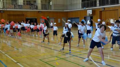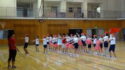 20日の朝、応援団の練習のようすです。運動会に向けて毎日練習している応援団。チームワークよく、一人ひとりの動きもだいぶさまになってきました。練習の成果ですね。今朝は運動会での場面を想定して、フォーメーションや細かい動きを確認していました。本番では、堂々とした応援を繰り広げてくれそうです。楽しみですね。