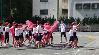 昨夜の雷がうそのように晴れ渡った21日朝、応援団が運動会に備えて初めて校庭で練習をしました。体育館と比べると声がひびかない校庭に、最初のうちは戸惑いも見られましたが、徐々に声が出始め、調子をとりもどしてきました。毎朝、本当によく練習しています。がんばれ応援団。