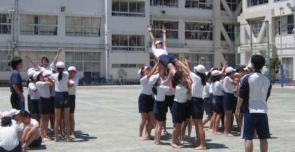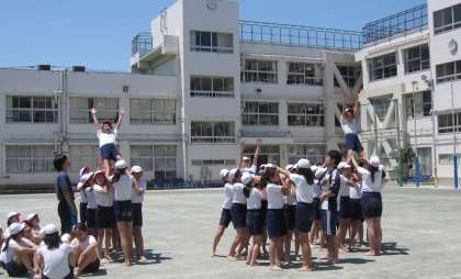 写真は6年生の様子です。2日前に初めて取り組んだ「人間起こし」は、友達と協力し、信頼しないとうまくできない技です。子どもたちは自信をもって演技をしていました。運動会当日のたくさんの拍手をイメージすることができました。