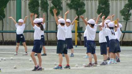 25日(月)、運動会が今週の土曜日にせまり、各学年ともに練習に余念がないところです。その練習のようすを少しずつ紹介します。まず最初は1年生の玉入れです。競技の合間に音楽に合わせてダンスがはいります。一生懸命踊る姿がかわいいですよ。