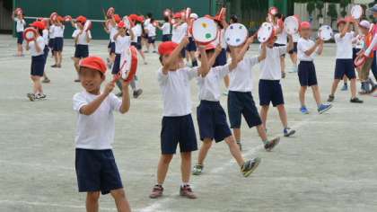 3年生の表現は「エイサー」です。手作りの太鼓ができて、今日初めて校庭で太鼓を実際にたたいておどりました。太鼓の音をならすタイミングがしっかりあっていました。