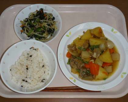 梅わかごはん 牛乳 五目うま煮 いそべあえ