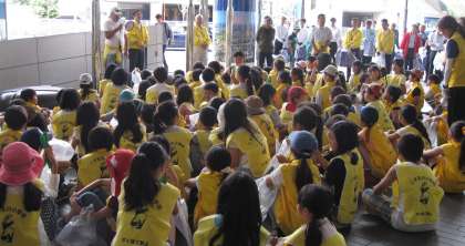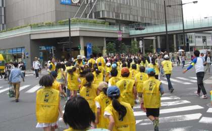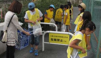 5日(金)、二子玉川地域の関係団体が集まって行う清掃活動「クリーンタウン作戦」に、4年生が参加しました。学校でそろいの黄色のビブスを身につけ、集合場所の二子玉川駅前に向かいました。全員にゴミ集め用の袋が配られ、地域の担当の方からお話を聞いた後、さあゴミ拾いです。