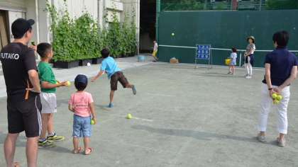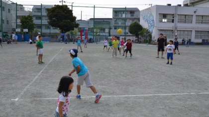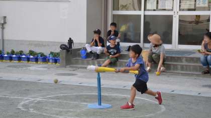 校庭の「ドッジボール」や「ティーボール」「ストラックアウト」のコーナーは男の子たちに人気です。