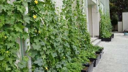 グリーンカーテンのキュウリ