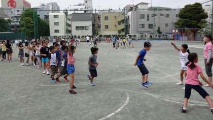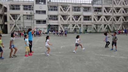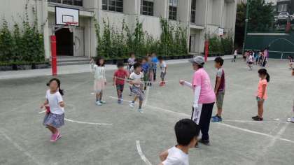 本校では昨年度から、子どもたちの体力向上に取り組んでいます。体育朝会では主としてなわとびを行い、子どもたちが運動に親しむ習慣をつけていきます。