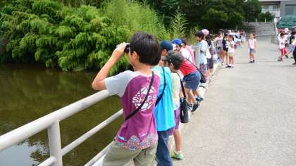 11日(木)1・2校時、3年生が多摩川の河川敷に出かけて探鳥会をしてきました。気温はあまり高くなかったものの、蒸し暑かったのですが、広々とした多摩川で、時折吹く心地よい風を感じながら自然を楽しんできました。