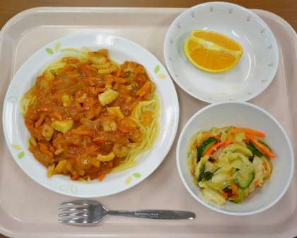 スパゲッティ地中海ソース 牛乳 イタリアンサラダ バレンシアオレンジ