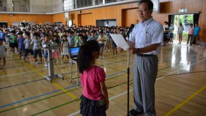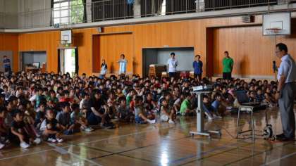 この日の朝会では、区のテニス大会で2位になった女子の表彰、代表委員会からの発表などもあり、子どもたちも活躍した朝会となりました。