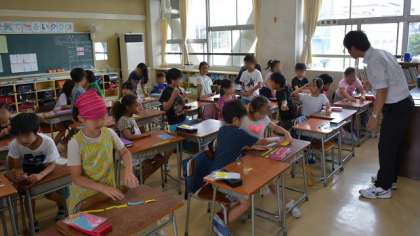 30日(火)、2年2組の算数授業のようすです。前日の2年1組と同じところを学習します。この授業は担任の初任者研修(今年度から教員になった者の研修)の位置づけとなっています。この日も他のクラスの教員が授業参観に数人ずつ訪れました。授業内容は同じでも指導者が変わると子どもたちの反応も変わります。まだ1年目の教員ですが、一生懸命準備してがんばりました。子どもたちもその気持ちに応えて、がんばっていました。とても素直な子どもたちです。