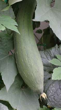 ツルと葉の間をよく見ると、こんな実が・・・ゴーヤとヘチマです。