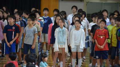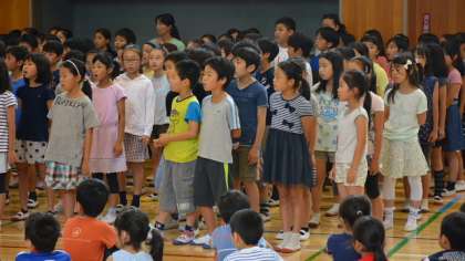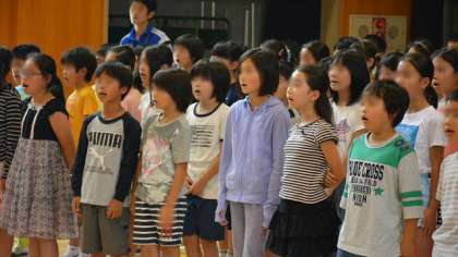 続いて4年生は「とんび」。5年は「海」。6年は「われは海の子」です。よく澄んだ美しい歌声を聞かせてくれました。さすが高学年です。