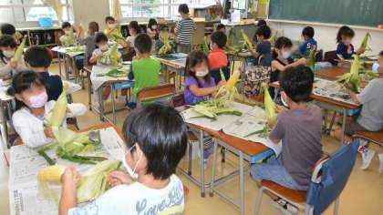 1年生 トウモロコシむき