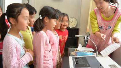 9日、10日の昼の放送は、希望者が参加するアカペラ大会でした。放送室に集まった参加者。順番を待って、思い思いの曲を歌いました。教室では、知っているこの名前がでると、大盛り上がりで応援していました。写真は9日のようすです。