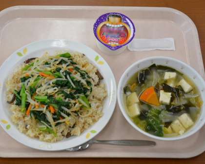 ビビンバ 牛乳 レタススープ シャーベット(ソーダ・ぶどう)