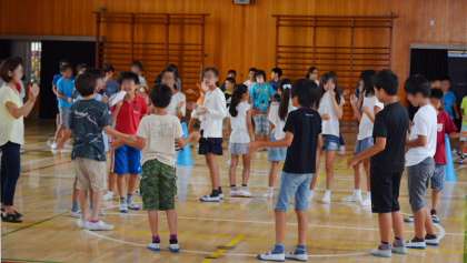 16日(木)、1学期も残すところ明日の終業式の日を残すのみとなりました。今日は6年生が体育館に集まって、日光林間学園のキャンプファイヤーの練習をしました。真ん中にキャンプファイヤーを担当する児童が集まって会をリードします。いつもノリの良い6年生。今日もスタートから大盛り上がり。フォークダンスの練習もしました。