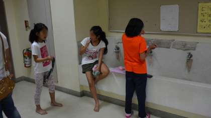 学習会の後、実は、夜の校舎探検特別ツアーをしたのですが、写真はありません。参加舎の特権ですね。以上で今日の活動は終了。宿泊者は就寝準備をして、各パーテーションで眠りにつきました。おやすみなさい。