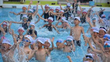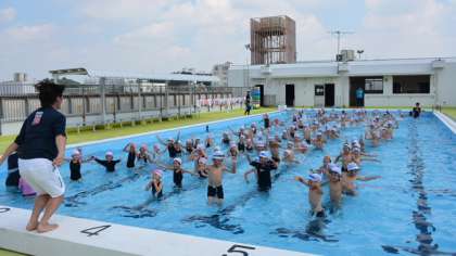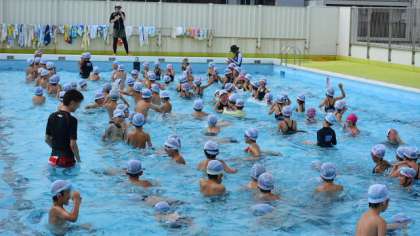21日(火)、夏休みにはいって3連休明けの今日から、夏季プールが始まりました。朝から気温はうなぎ登り、絶好のプール日和です。写真は1・2年生のようすです。たくさんの子どもたちが参加して、元気に水の感触を楽しんでいきました。