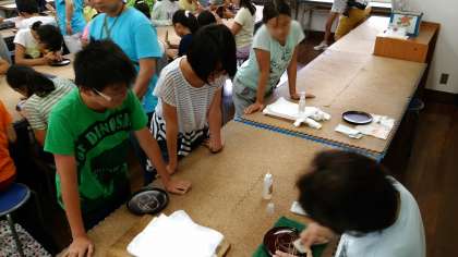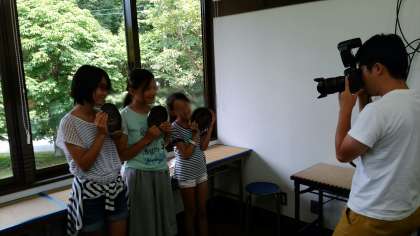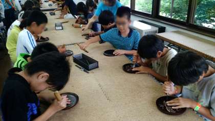 日光彫り、なかなかのできばえです。作品と一緒に写真を撮ってもらう子も。