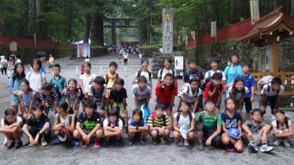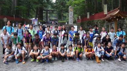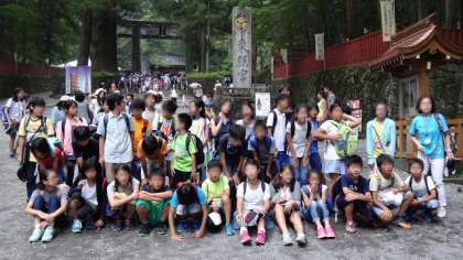 午後からは東照宮の見学をしました。いつもは陽明門の前で記念撮影ですが、改修中のため、東照宮の入り口鳥居前でクラス写真を撮りました。
