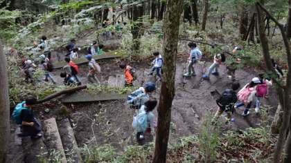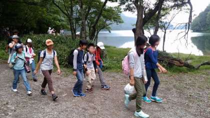10時20分、ハイキングのスタートです。まずは湯の湖畔を通って湯滝をめざして歩きます。