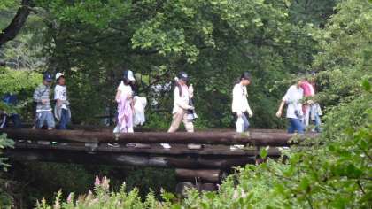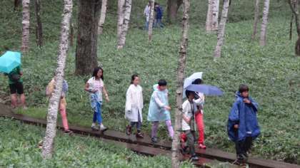 視界が開けて、湯川沿いのコースに出てきました。雨がさらに小降りになってきました。