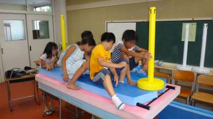 アドベンチャーin多摩川いかだ下り大会」に向けて、いかだ作りは、夏休み中に、参加する子どもたちと保護者の方々に手伝っていただいて進めました。