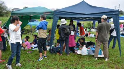 男子チーム「二子ホークス」は、16分あまりでゴール。普通に歩いて1キロメートル15分といわれていますから、1.5キロメートルを16分は立派な成績です。ゴール後は保護者の皆さんに準備していただいたテントでゆっくりと昼食を食べ、疲れた体を休めました。最後に表彰式に参加。残念ながら賞をもらうことはできませんでしたが、夏休みの最後に貴重な経験をした子どもたちの顔には、参加した喜びの笑顔がありました。お手伝いいただいた参加児童の保護者の皆さん、援助いただいたPTA、そして大会運営に当たってくださった皆様に感謝です。